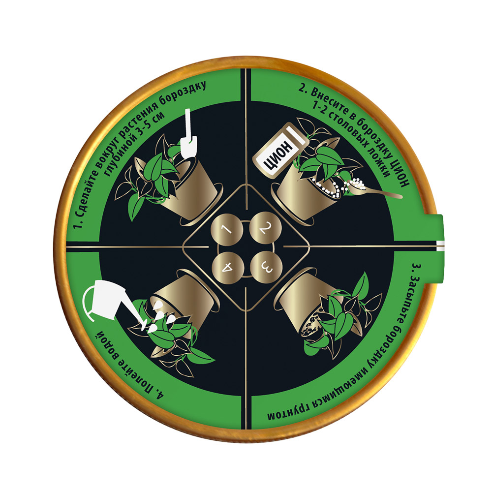 Создает и поддерживает оптимальные условия для гармоничного роста и полноценного развития декоративно лиственных комнатных растений. Способствует формированию сильной корневой системы, образованию новых побегов, ярких блестящих листьев, восстановлению поврежденных растений. Может использоваться как самостоятельно, так и в виде корректирующих добавок к любой основе (посадочному грунту). Используется для обеспечения растения сбалансированным набором элементов питания на любом этапе его жизненного цикла. В течение периода полезного действия ЦИОНа никаких дополнительных подкормок растению не потребуется.